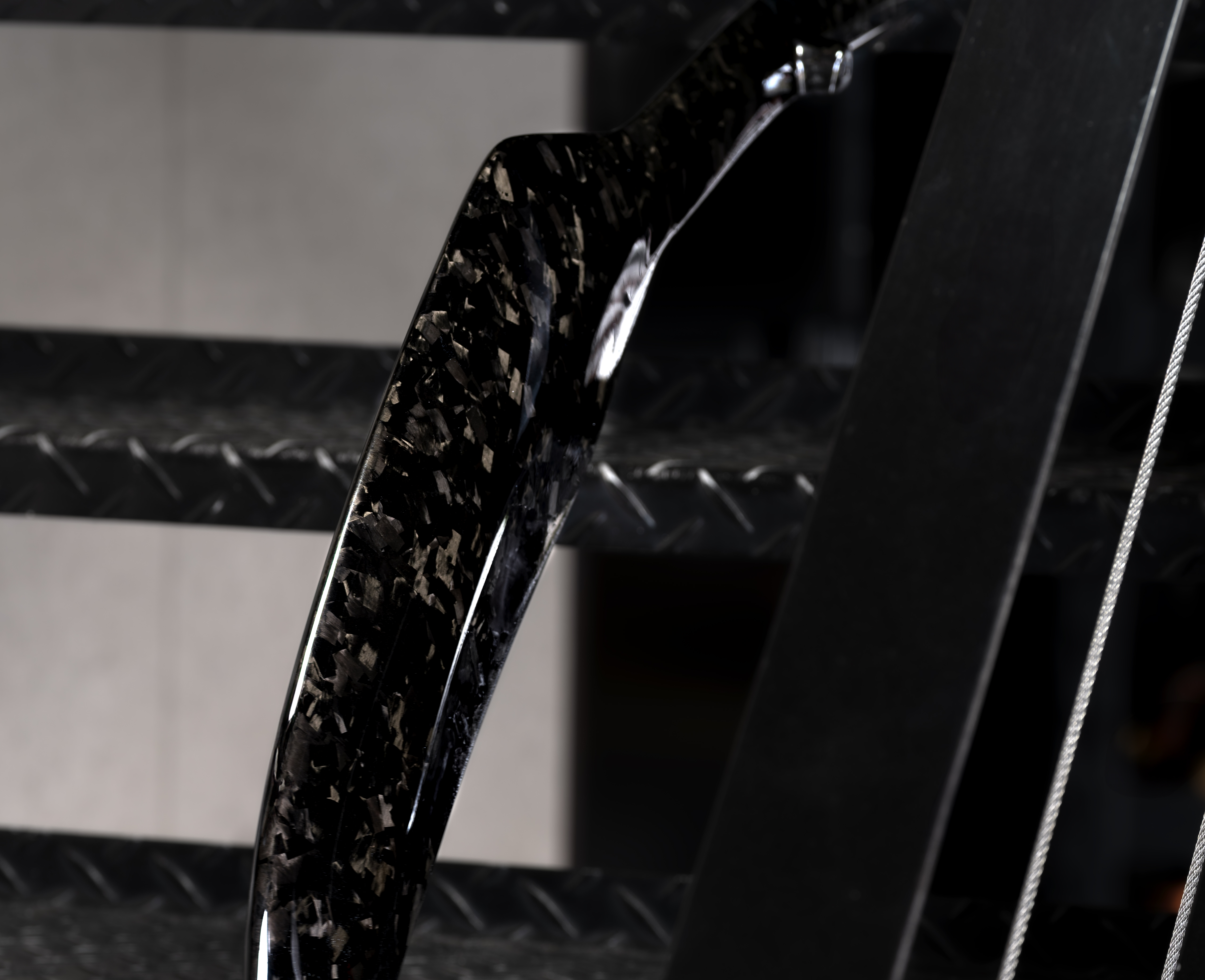 しかし、一度走り出せば、鍛造カーボンの艶やかな質感が光を捉え、角度によって異なる表情を見せます。